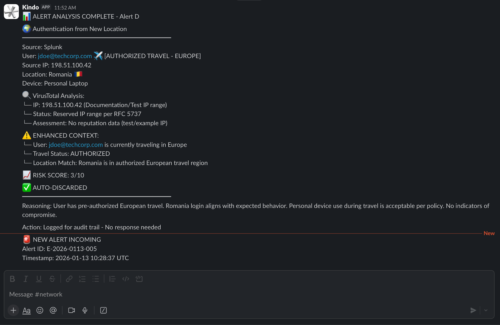When a real incident is confirmed, responding quickly is one of the most important factors. With many SOC teams today, containment might involve jumping into a firewall console to block an IP, then an EDR tool to isolate a host, then an identity platform to disable a user. It's basically a series of manual steps prone to delays. An AI-native SOC flips this script. You simply specify the desired outcome ("isolate the compromised host"), or the system decides it based on policy, and Kindo executes all the necessary actions in seconds across all relevant systems. It then checks that those actions succeeded in shutting down the threat.